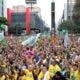 Centenas de milhares de pessoas vestidas com camisetas verde e amarelo lotam a Avenida Paulista, em São Paulo, neste domingo (25) em manifestação de apoio ao...