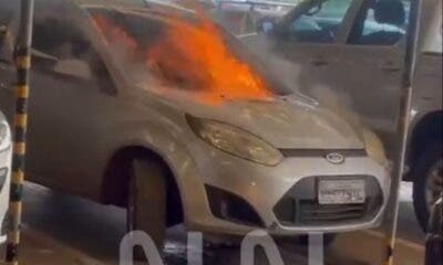 Um carro modelo Ford Fiesta de cor prata pegou fogo no estacionamento de um atacado na Avenida Ceará, em Rio Branco, na manhã deste sábado (17)....
