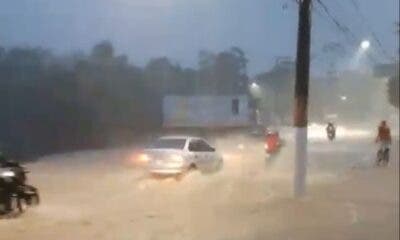 Em poucos minutos da forte chuva que caiu sobre Rio Branco (AC) no fim da tarde desta sexta-feira, 12, trecho da rua Rio Grande do Sul,...