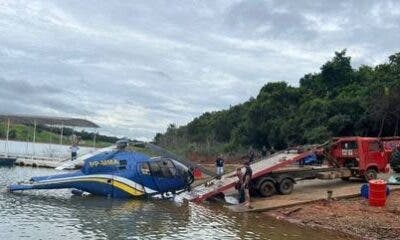 O helicóptero que caiu no Lago de Furnas, em Capitólio, a 273 km de Belo Horizonte, foi retirado da água, no final da tarde desta quarta-feira...