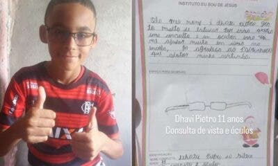 Com apenas 11 anos, Dhavi Pietro da Silva, morador de Campina Grande, na Paraíba, surpreendeu a todos ao pedir um presente inusitado na cartinha do Papai...