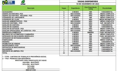 O Sistema Nacional de Emprego do Acre (Sine), está ofertando 44 vagas de emprego para Rio Branco, nesta terça-feira, 19. Dessas, 16 são para quem possui...