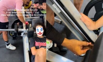 Uma jovem viralizou nas redes sociais após postar um vídeo de seu cabelo preso em uma máquina da academia. Vic Roux afirmou que fez a postagem...