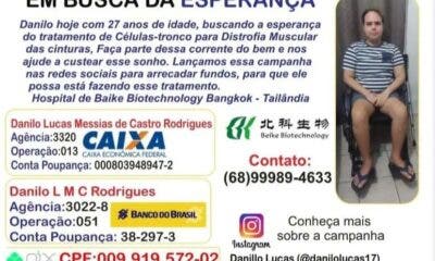 A família de Danilo Lucas Messias de Castro Rodrigues, 27, tem realizado uma campanha para arrecadar dinheiro para realizar um tratamento com células-tronco na Tailândia. O...