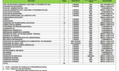 O Sistema Nacional de Emprego do Acre (Sine), está ofertando 57 vagas de emprego para esta quinta-feira, 10. Dessas, 23 são para quem possui nível fundamental,...