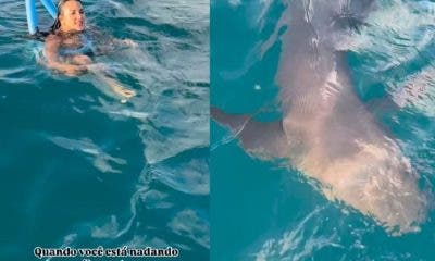 Emilly Vasconcelos nadava com peixes em uma área de Fernando de Noronha quando foi surpreendida pela companhia de um tubarão. Um vídeo postado nas redes sociais que viralizou (assista aqui) mostra...