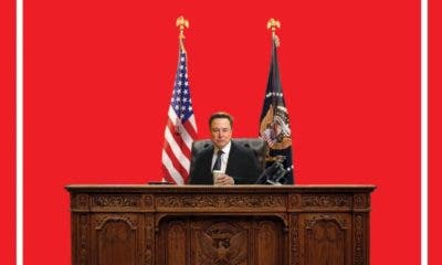 A revista norte-americana Time destacou nesta sexta-feira, 7, em sua capa uma imagem em que o bilionário Elon Musk aparece sentado na mesa presidencial do salão...