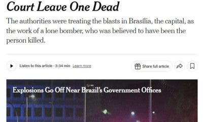 As explosões ocorridas na noite de quarta-feira, 13, na Praça dos Três Poderes, em Brasília, que terminaram com a morte de um homem, repercutiram na imprensa...