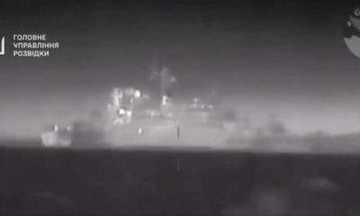 As forças militares da Ucrânia destruíram o navio Tsezar Kunikov, usado pela Marinha da Rússia para se aproximar rapidamente, ancorar e desembarcar blindados e tanques de...