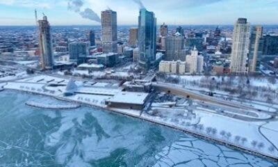 A onda de frio extremo que atinge os EUA congelou o Lago Michigan, que é um dos cincos Grandes Lagos da América do Norte. Imagens capturadas...
