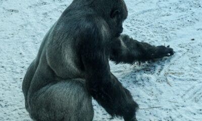 Um momento fofo de um gorila brincando na neve e na geada acabou encantando os funcionários de um zoológico e até o público das redes sociais....