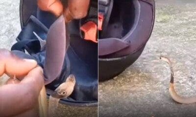 Um motociclista da cidade de Trissur, na Índia, descobriu uma naja escondida no capacete dele, no momento em que saía do trabalho. O incidente ocorreu após...