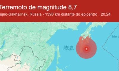 Um terremoto de grande magnitude atingiu a península de Kamchatka, na Rússia, na noite desta terça-feira, 29. Segundo o serviço geológico dos Estados Unidos, o terremoto marcou...