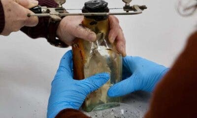 Um pintor da Tasmânia (Estado da Austrália) descobriu uma garrafa de vidro fechada que estava escondida havia mais de 120 anos dentro de um buraco na...