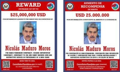 O departamento de Justiça dos Estados Unidos divulgou um cartaz oferecendo uma recompensa de US$ 25 milhões (R$ 140 milhões) em troca de informações que levem...