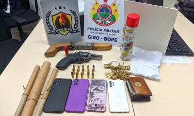 Equipes da Polícia Militar prenderam nesta segunda-feira (10) três acusados flagrados armados na frente da Escola Flora Calheiros Cotrin, no bairro Esperança da Comunidade, na zona...