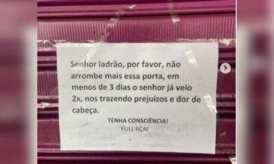 Goiânia – Após duas tentativas de arrombamento em uma loja de açaí em apenas três dias, o proprietário do local colocou um recado na porta pedindo que o ladrão...
