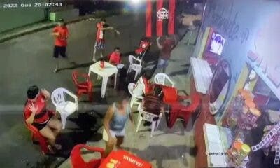 CLIQUE AQUI para ver o vídeo. Uma câmera de segurança registrou o momento em que criminosos armados fizeram um arrastão em frente a um bar localizado no...