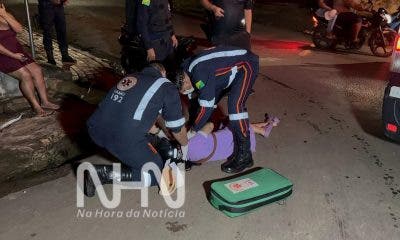 A motociclista Ketlen de Araújo Ferreira, de 27 anos, ficou ferida após colidir com uma bicicleta motorizada pilotada por um adolescente de 15 anos na noite...