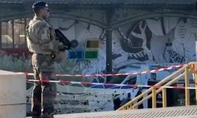 Um homem foi baleado após pichar uma suástica e ameaçar policiais com uma arma falsa em uma movimentada estação de metrô de Paris, na França, na...