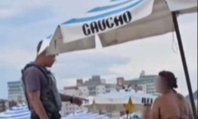 Uma equipe da Polícia Militar chamou a atenção de um casal, na praia da Guilhermina, em Praia Grande (SP), enquanto os dois estavam ‘se pegando’. Imagens...