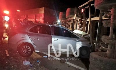 Quatro pessoas ficaram levemente feridas na noite desta segunda-feira (10), após uma carreta bitrem tombar e interditou totalmente a BR-364, no km 23, no município do...