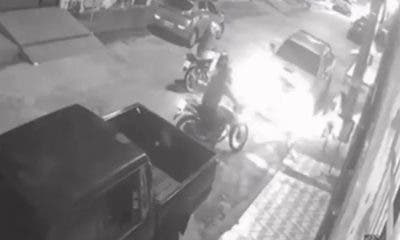 Um vídeo flagrou o momento em que um homem e uma criança são rendidos por três criminosos durante um assalto, na Rua Major Pedro Simpson, no...