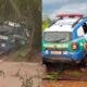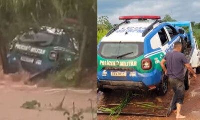 Uma viatura da Polícia Militar de Goiás foi arrastada durante uma tempestade em Anicuns (GO), após policiais fazerem o resgate de uma mulher em cárcere privado....