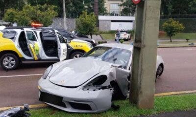 Um motorista de uma Porsche 718 Cayman, perdeu o controle de direção e destruiu parte do carro, em Curitiba-PR. O automóvel de luxo pode custar entre...