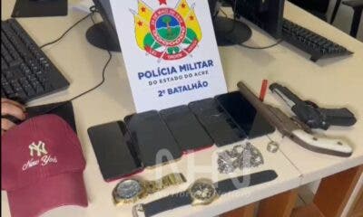 Os assaltantes Mateus Saldanha de Almeida, 23 anos, e João Vitor Silva de Souza, 24, foram presos acusados de roubo e porte ilegal de arma de...