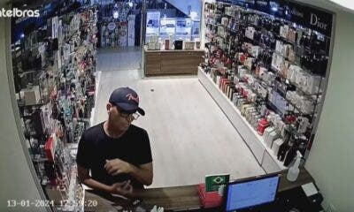 Imagens de uma câmera de segurança flagram um “assaltante educado” realizando o crime contra um aloja de perfumes. Com elogios e pedido de desculpas, o homem...