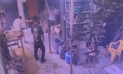 Imagens de câmeras de segurança flagram o momento de uma confusão entre um policial militar e um policial penal que por pouco não terminou em tragédia....