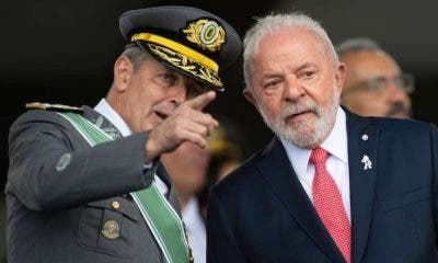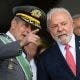 O ministro da Defesa, José Múcio, e os três comandantes militares — general Tomás Paiva (Exército), almirante Marcos Olsen (Marinha) e brigadeiro Marcelo Damasceno (Aeronáutica) —...