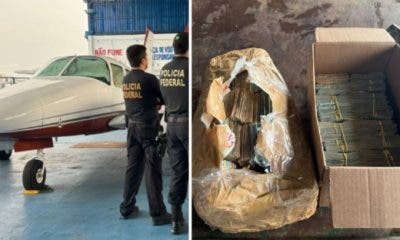 A Polícia Federal (PF) apreendeu uma sacola e uma caixa de papelão contendo malotes de dinheiro, que seriam transportados em um avião fretado em Manaus, no...