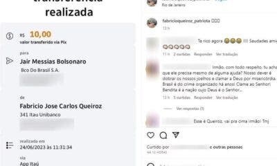 O ex-assessor do senador Flávio Bolsonaro (PL-RJ) Fabrício Queiroz, investigado por suposto esquema de rachadinha, divulgou no sábado (23) uma transferência via Pix de R$ 10...