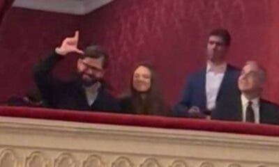 O presidente do Chile, Gabriel Boric, foi a um show do cantor Caetano Veloso no Teatro Municipal de Santiago na 3ª feira (6.jun.2023). Apesar de discordâncias...