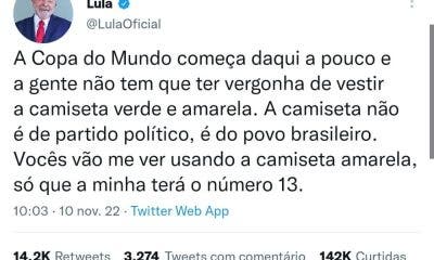 O presidente eleito Luiz Inácio Lula da Silva, do Partido dos Trabalhadores (PT), usou suas redes sociais, nesta quinta-feira, 10, para dizer aos seus seguidores que...