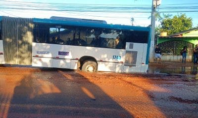 Um ônibus do transporte coletivo de Rio Branco atolou na manhã desta quarta-feira (29) em um buraco formado pelo rompimento de uma adutora de água na...