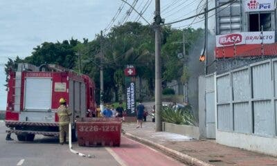 Imagens de vídeo mostram o exato momento em que um curto circuito causa o incêndio. O poste de energia fica muito próximo ao prédio do hospital,...