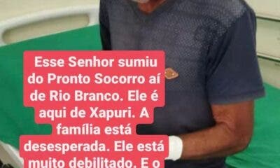 A família de Antônio Cândido da Silva, de 71 anos, pede ajuda para encontrar o idoso após ele ter, supostamente, fugido do Pronto-Socorro de Rio Branco...