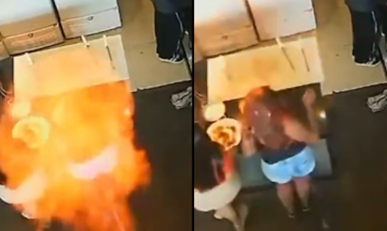 Cabelo de mulher pega fogo após acidente em restaurante em BH