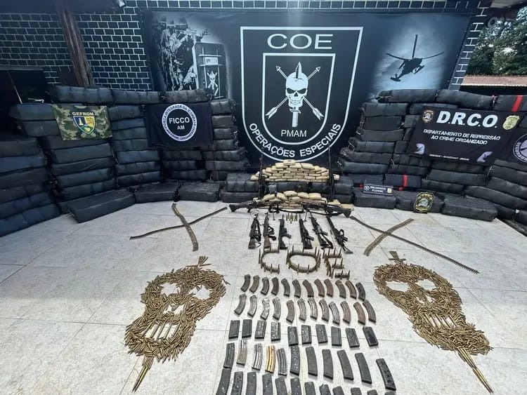 MANACAPURU (AM) – 11 de fevereiro de 2026 – Uma operação conjunta do Comando de Operações Especiais (COE) e da Delegacia Especializada em Repressão ao Crime Organizado (DRCO) do Amazonas resultou na apreensão de mais de quatro toneladas de entorpecentes e um extenso arsenal de armas de guerra na noite de terça-feira (10). A ação ocorreu por volta das 22h nas proximidades da Comunidade do Pesqueiro, em águas do Rio Solimões frente ao município de Manacapuru, no interior do estado.