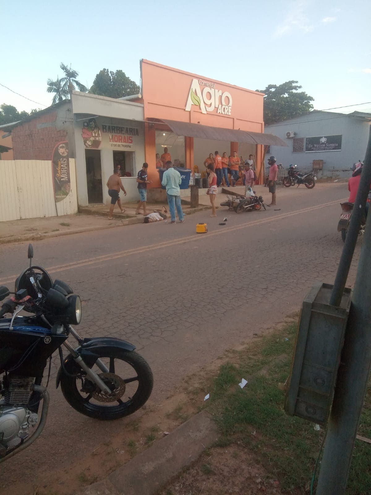 Em Sena Madureira, homem é atropelado por motociclista, bate cabeça no meio fio e vai para o hospital da cidade