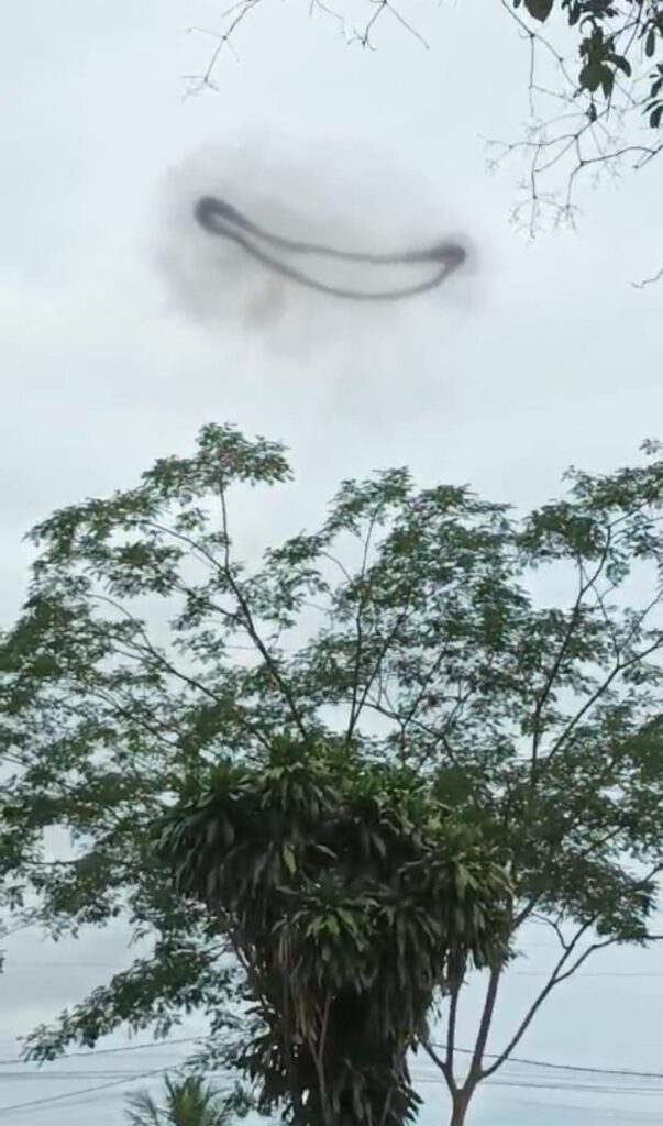 Algo em formato de círculo flutua nos céus. A reportagem fez uma breve pesquisa e descobriu que a estranha imagem pode se tratar de poeira ou partículas finas de resíduos da combustão.