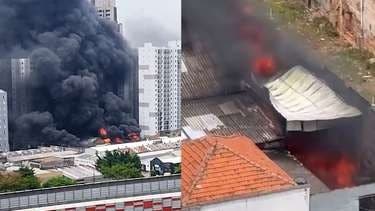 Um vídeo que circula nas redes sociais mostra uma coluna de fumaça preta cobrindo o local, na Rua Martim Burchard, perto da estação do Brás.