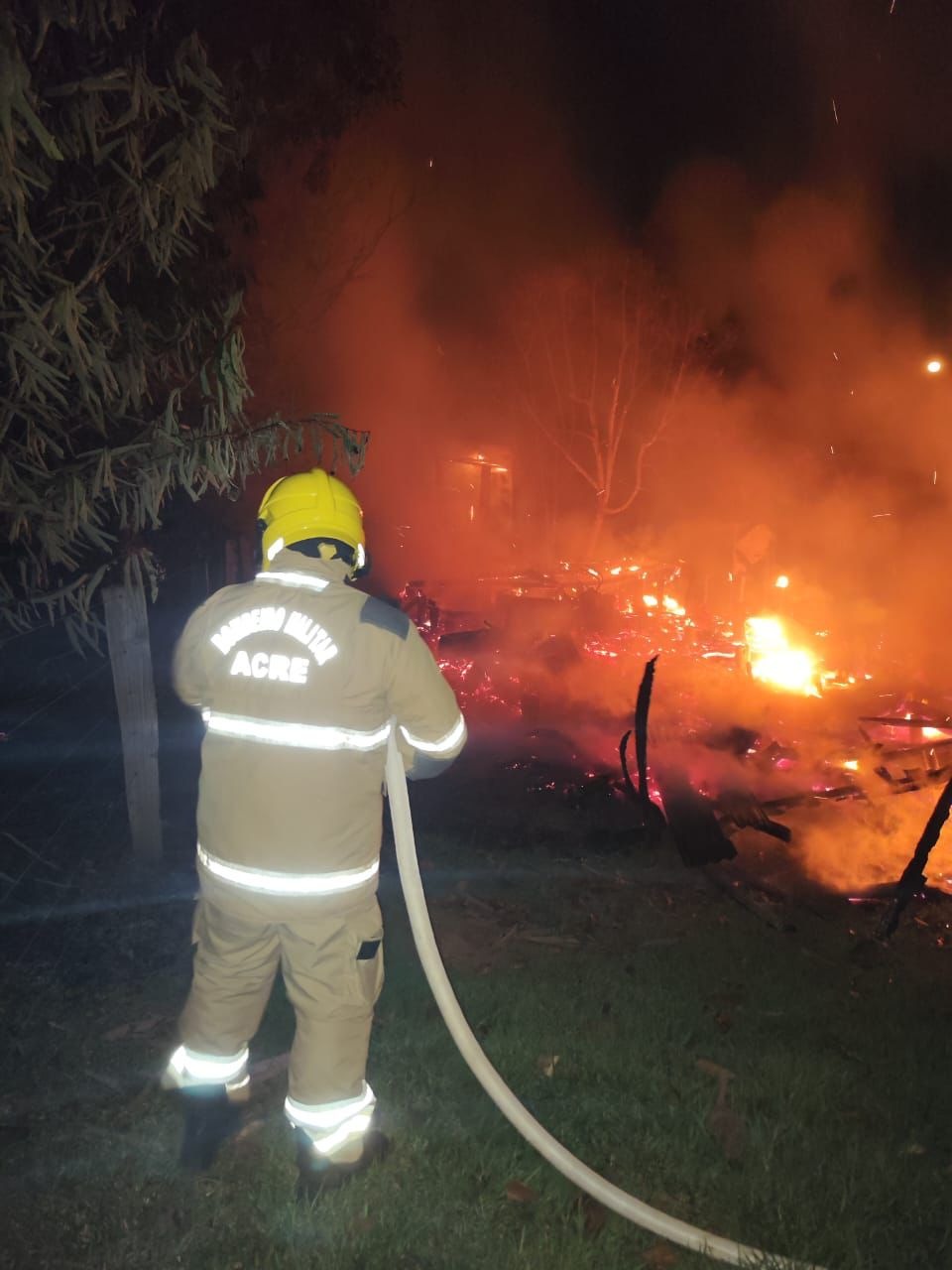 Um incêndio de grandes proporções destruiu completamente uma residência localizada na Estrada do Pacífico, Km 17 (BR-317), com mais 5 km de ramal, na zona rural de Brasiléia, na noite desta quarta-feira (8). Segundo o Corpo de Bombeiros, as chamas teriam sido provocadas de forma intencional após um desentendimento familiar.