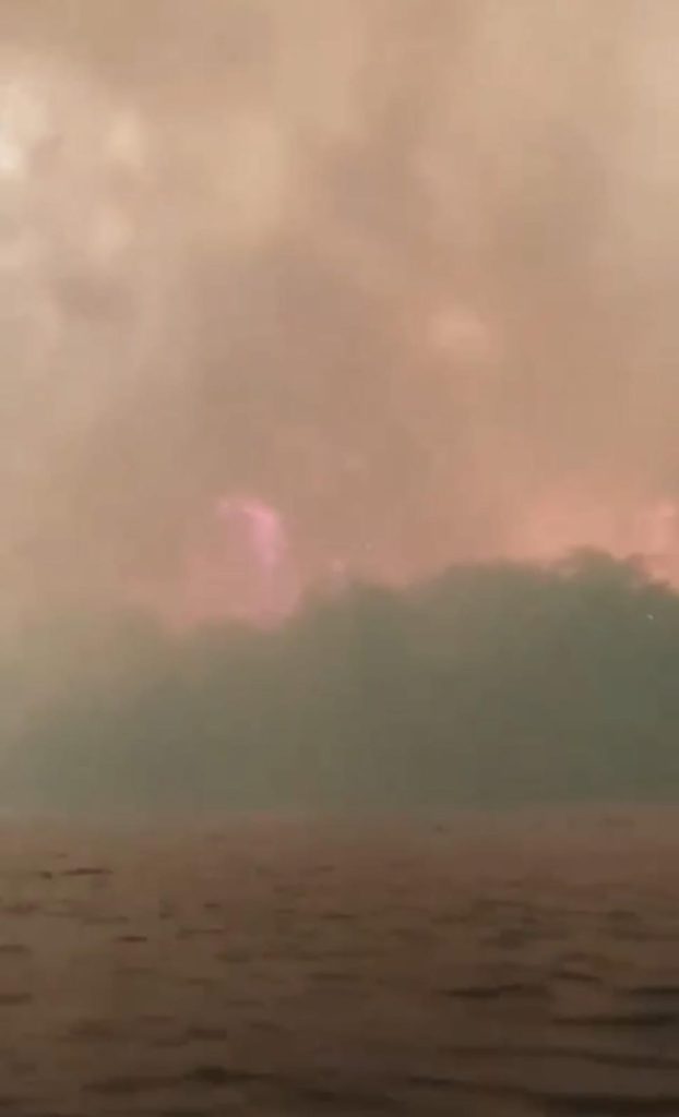 Na semana passada, dois pescadores capturaram imagens impressionantes de um incêndio devastador que ocorreu às margens do Rio Mamoré, em Guajará Mirim, na fronteira entre Rondônia e a Bolívia. O vídeo, que rapidamente se espalhou nas redes sociais, mostra o fogo consumindo a vegetação local em meio a uma intensa tempestade.