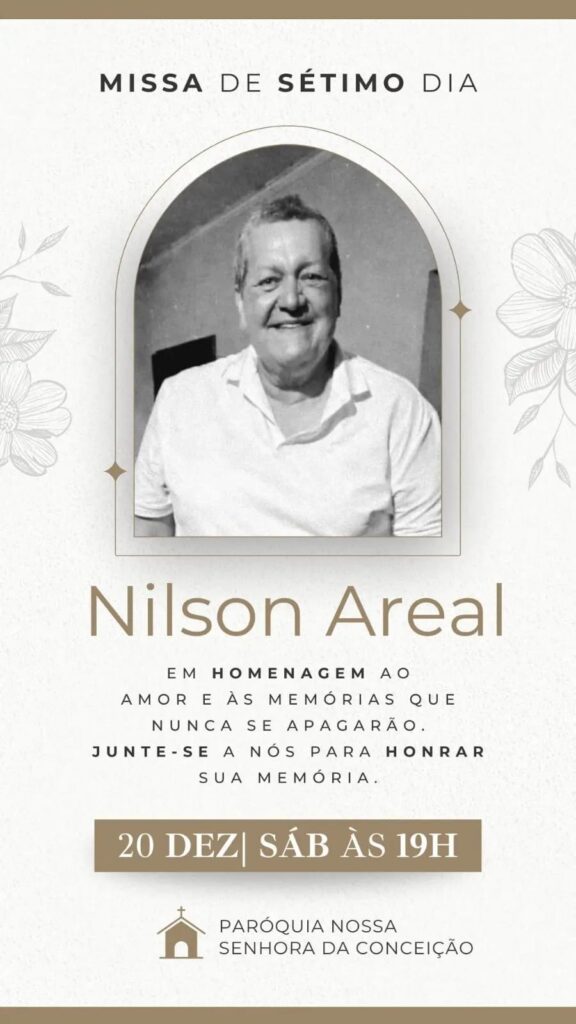 SENA MADUREIRA (AC) — Famílias, amigos, autoridades e moradores de Sena Madureira se reunirão neste sábado (20), às 19h, na Paróquia Nossa Senhora da Conceição, para a missa de sétimo dia em homenagem a Nilson Roberto Areal de Almeida — conhecido como Nilson Areal —, um dos nomes mais emblemáticos da política acreana, que faleceu aos 63 anos no último domingo (14).