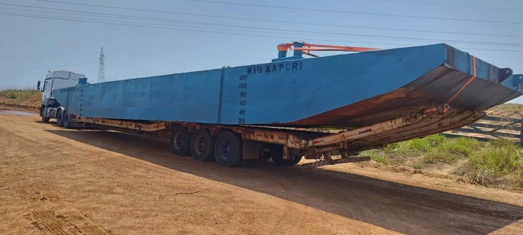 O transporte da balsa foi feita por uma carreta prancha, com a escolta de dois veículos da Polícia Rodoviária Federal (PRF), para que fosse garantida a segurança durante o percurso na rodovia até os municípios de Sena Madureira e Xapuri.