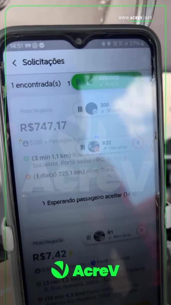 Porto Velho, RO – Um motoboy de Porto Velho viralizou nas redes sociais após compartilhar um vídeo mostrando uma corrida inusitada que recebeu pelo aplicativo 99: um trajeto de 725 quilômetros até o Acre, com uma estimativa de valor de R$ 747,17.